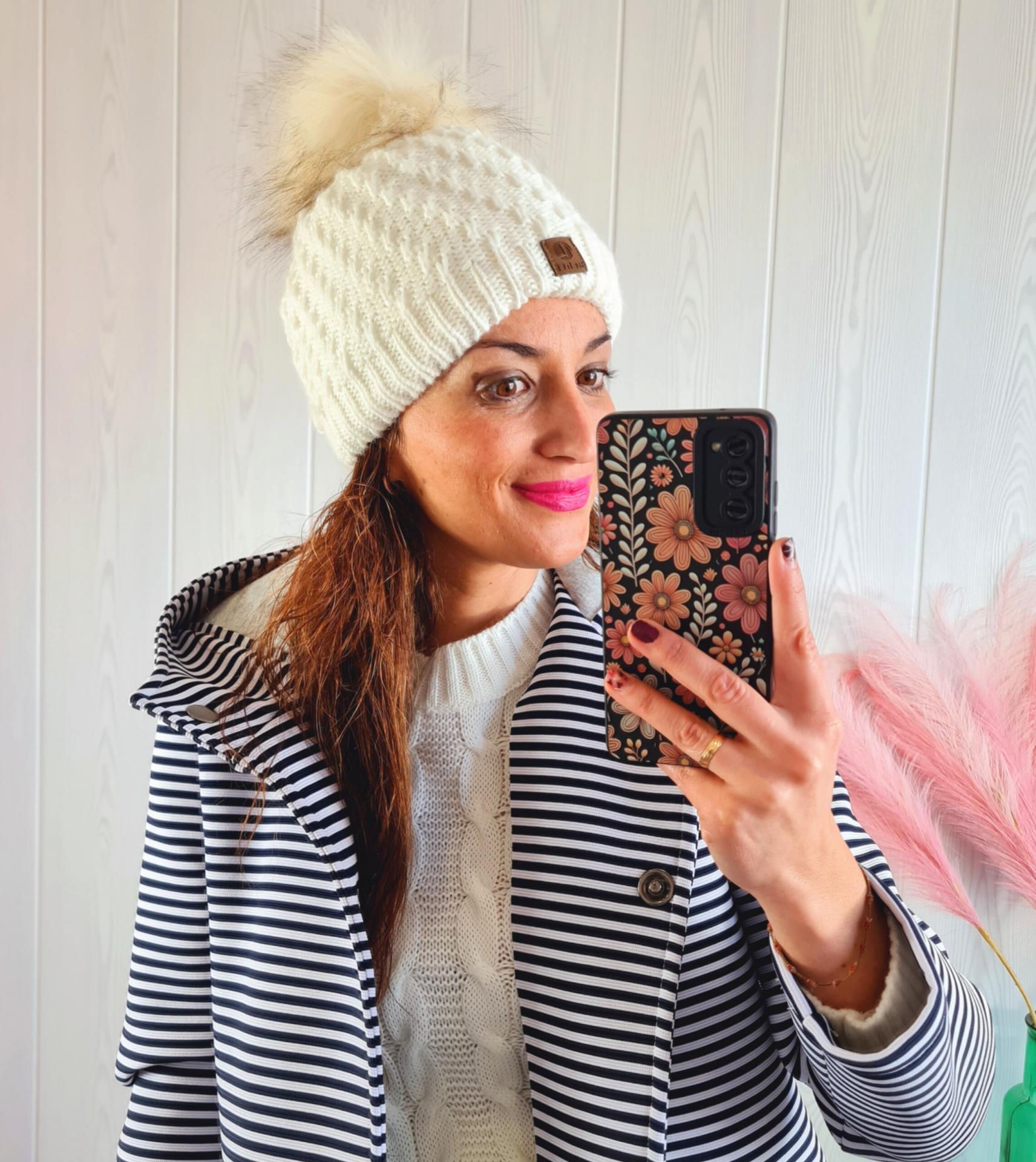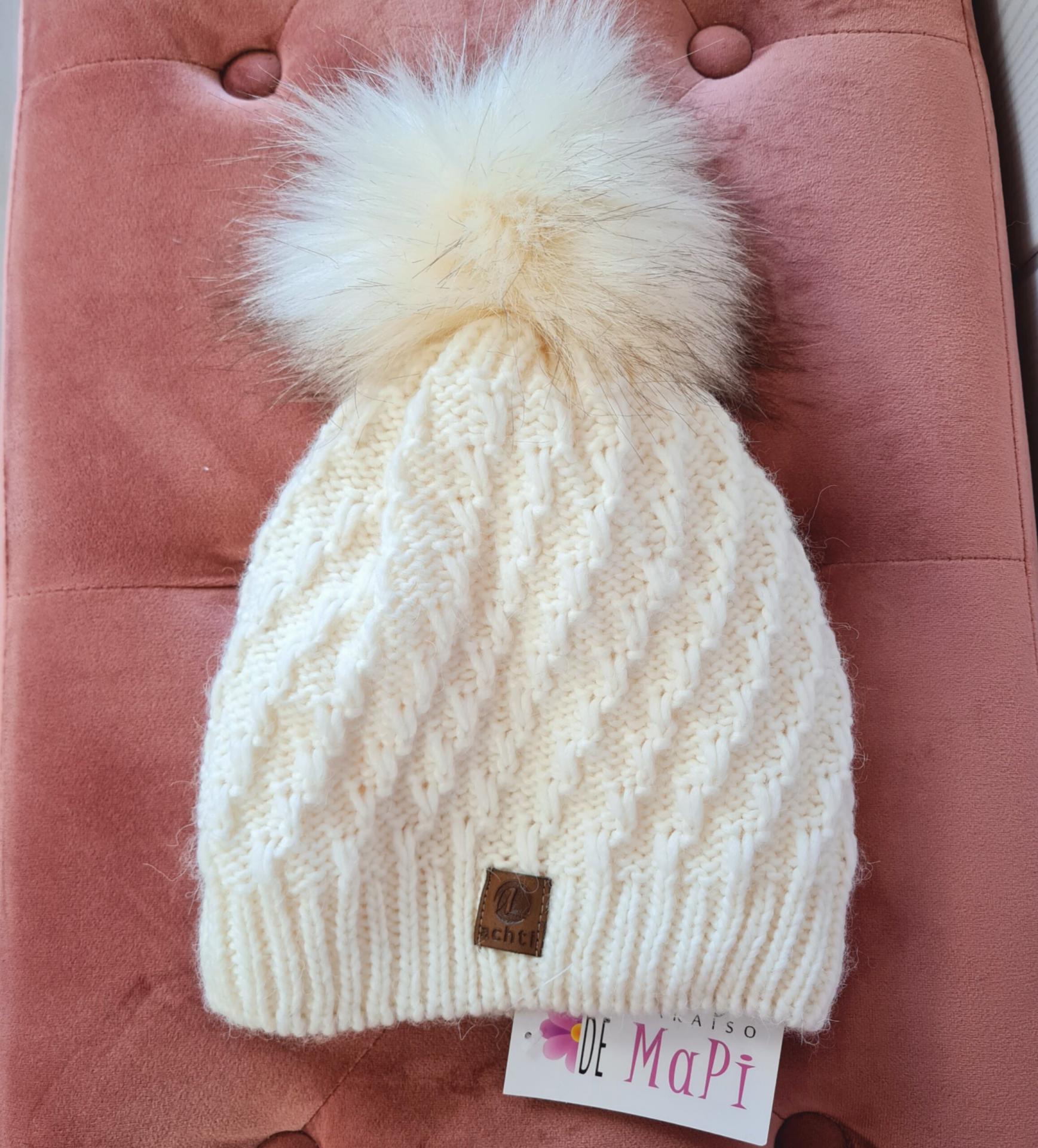 Gorro de lana en color blanco con pompón de adorno e interior de forro polar.