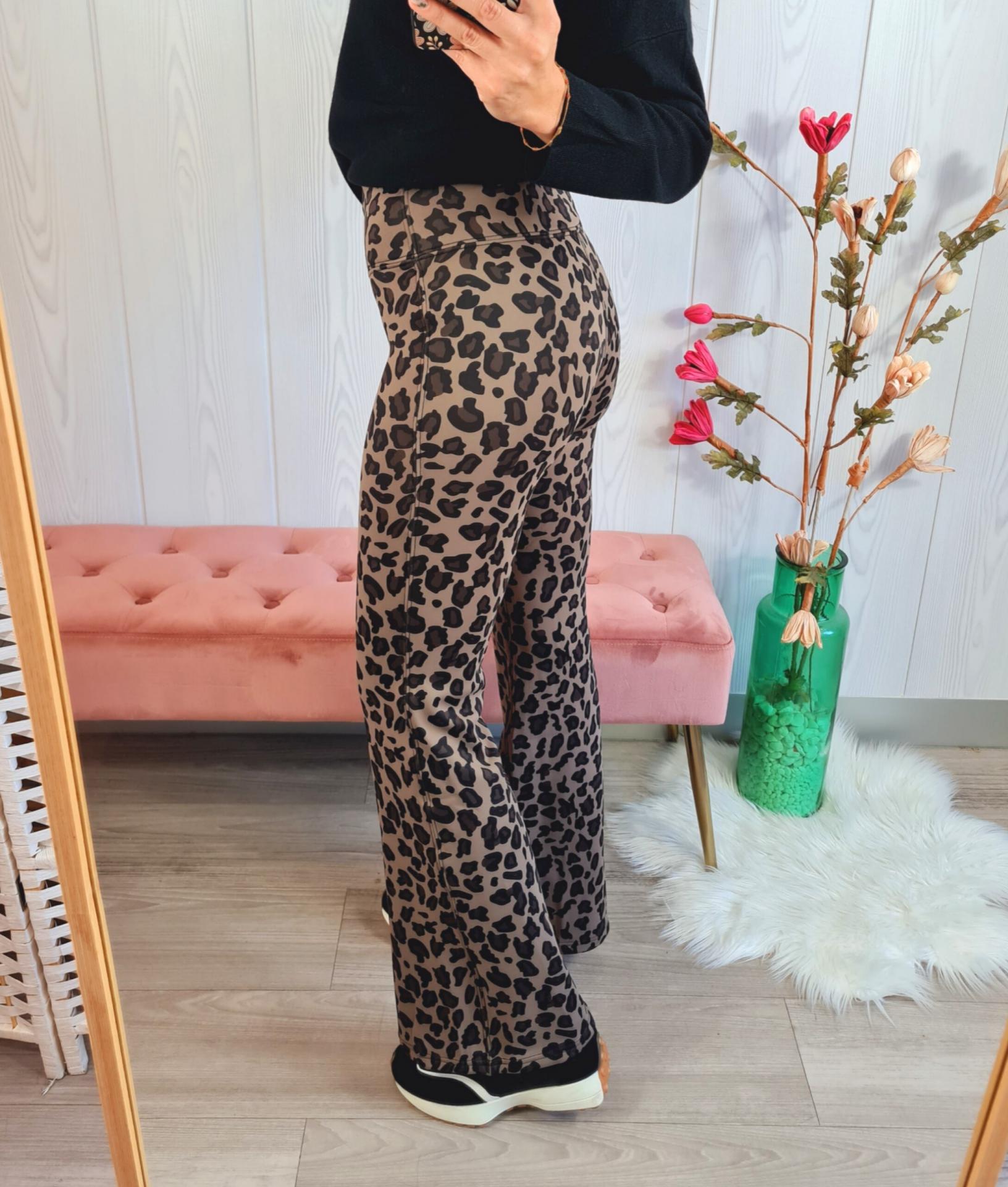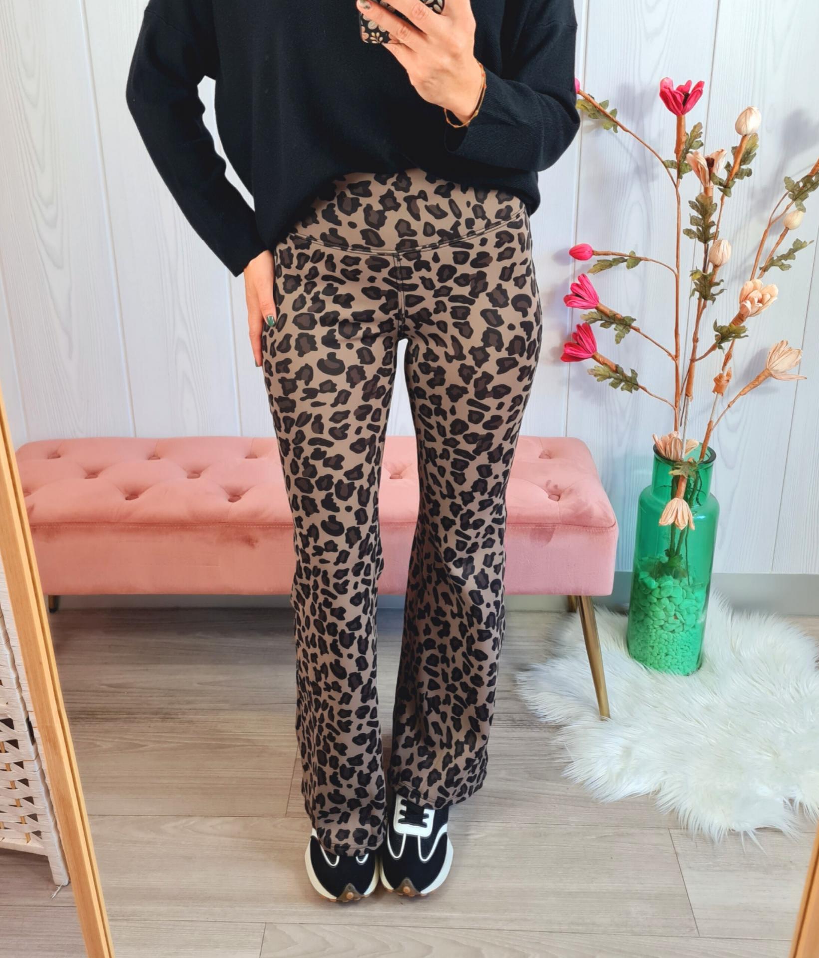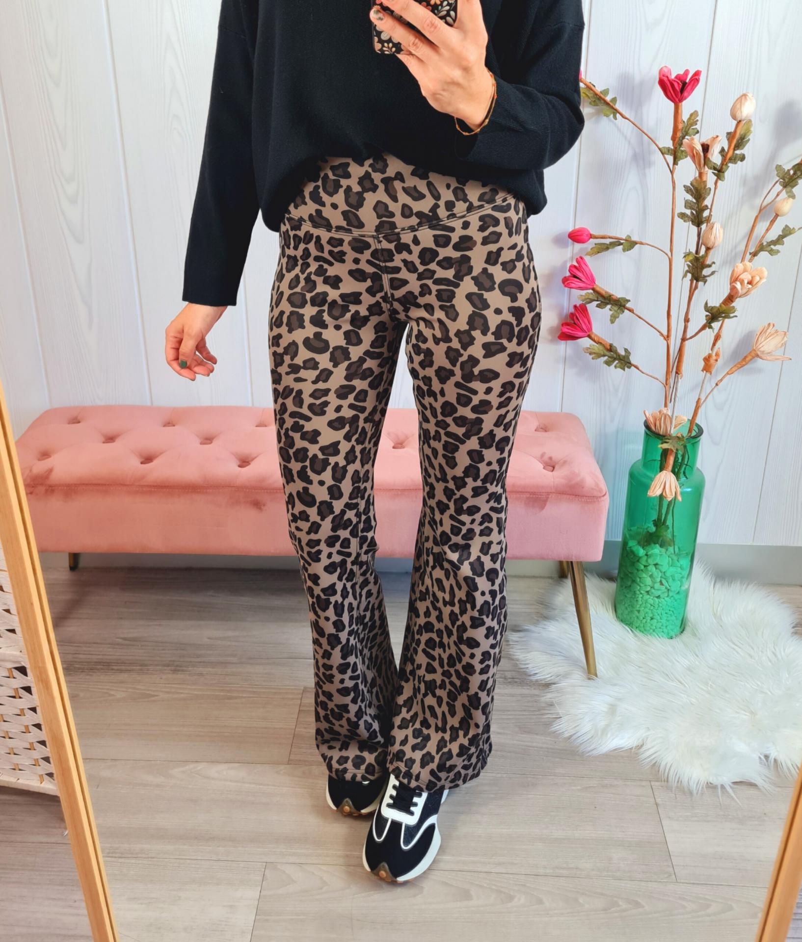 Leggins de color camel con estampado print. Tienen el interior forradito.