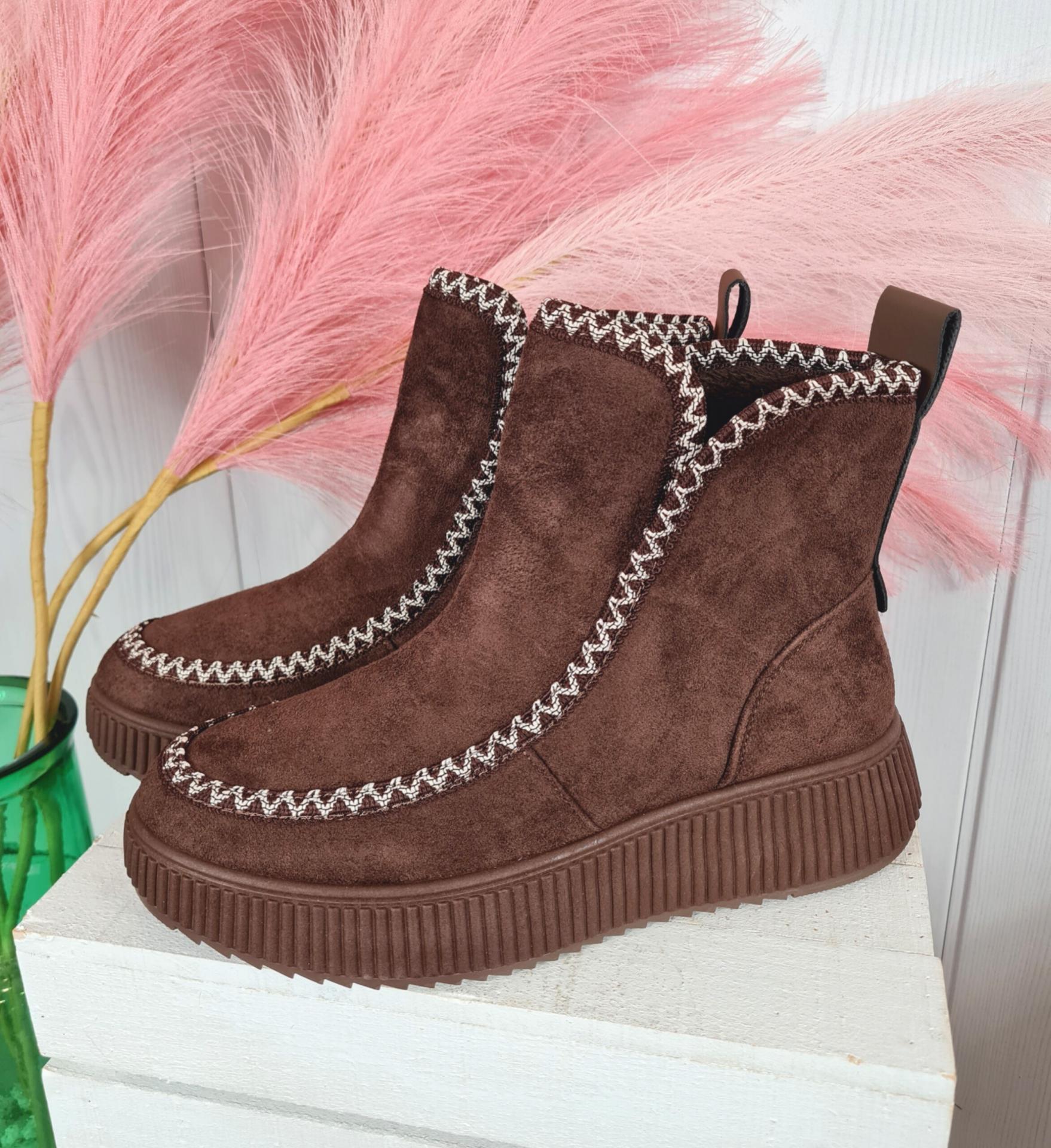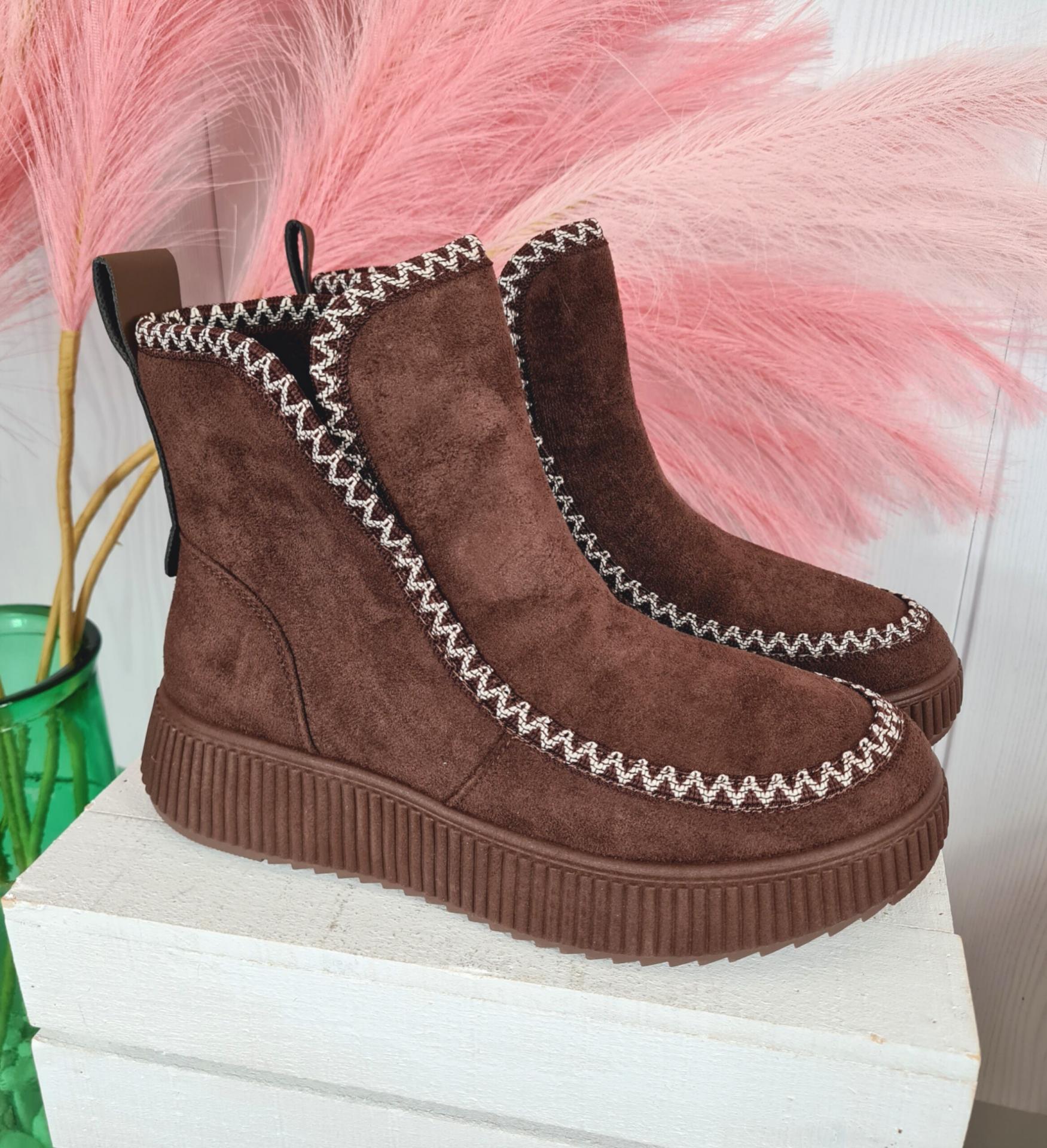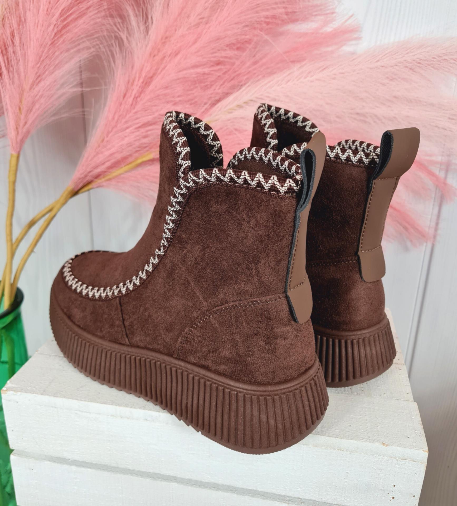 Botines de plataforma en color marrón chocolate, calentitos por dentro, costura en beige.