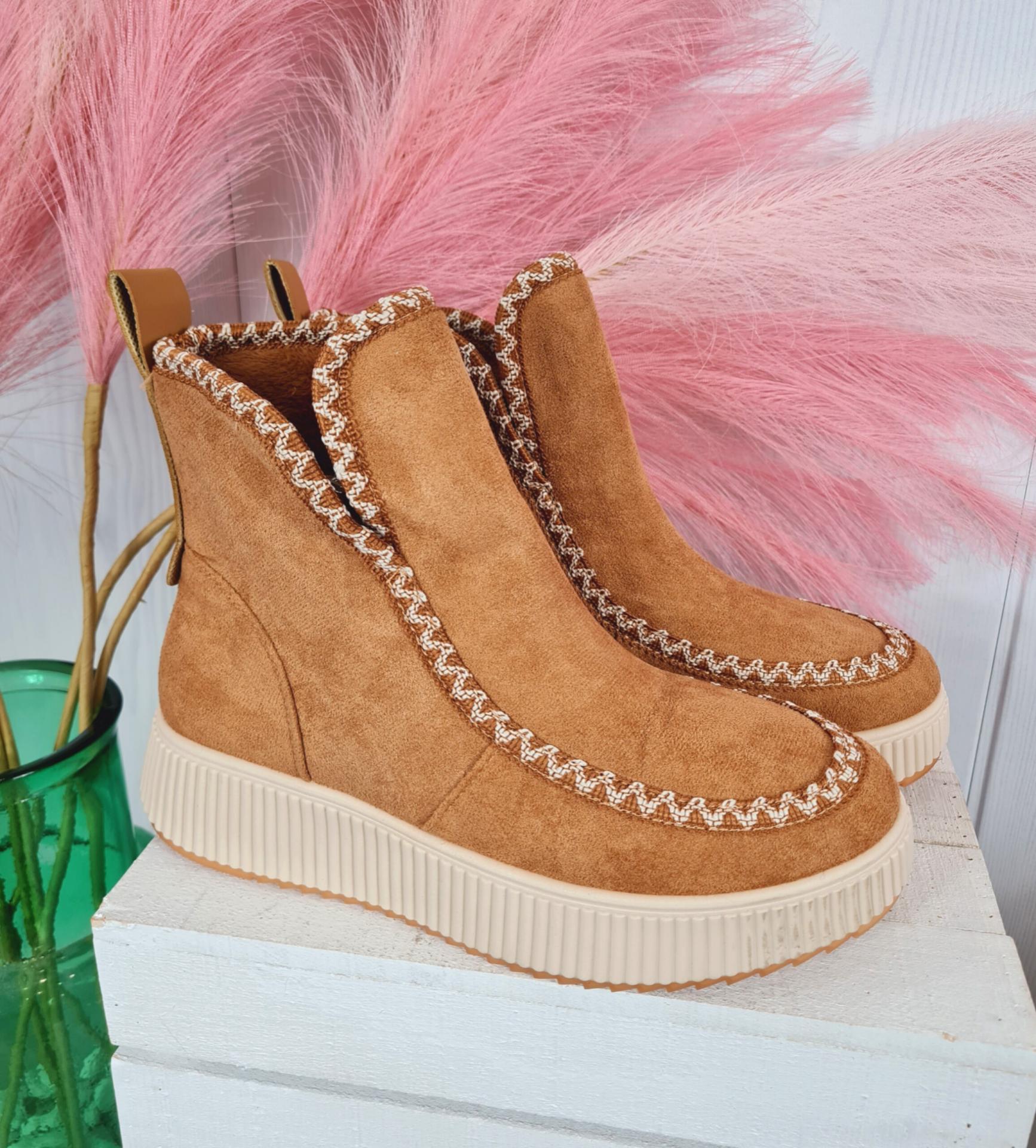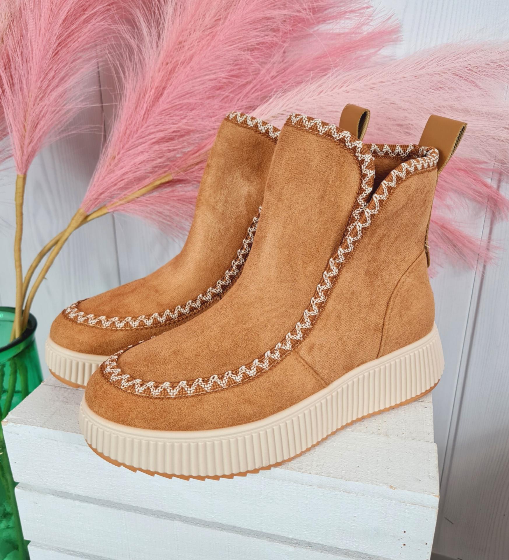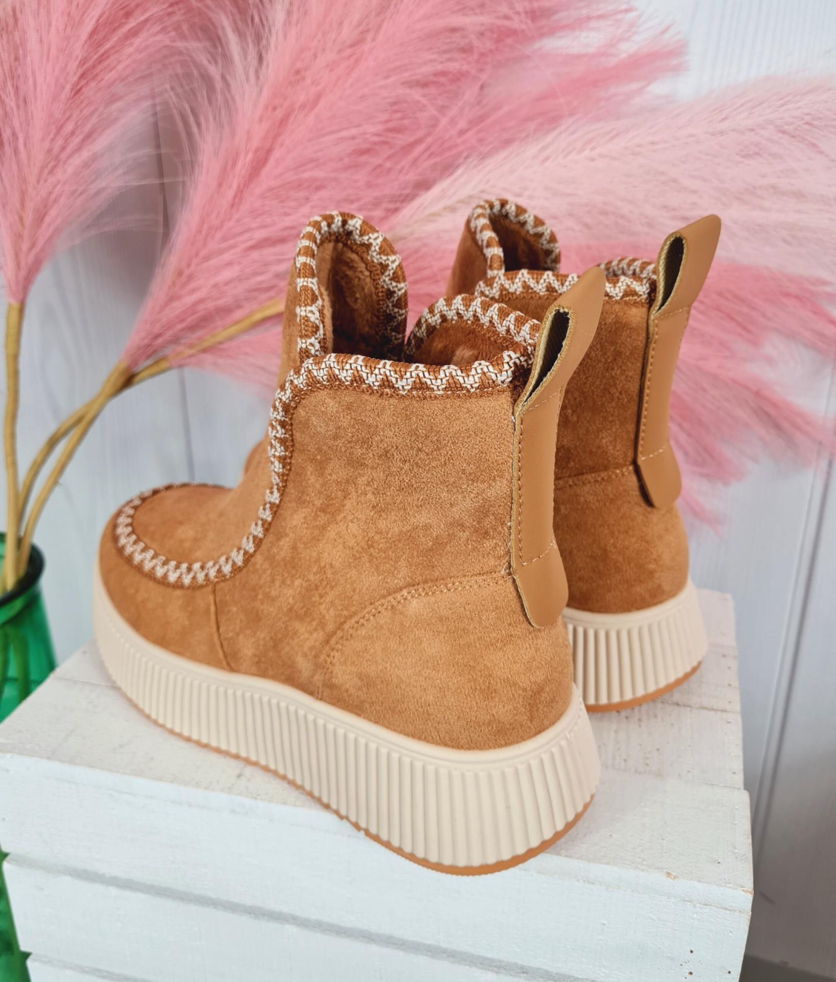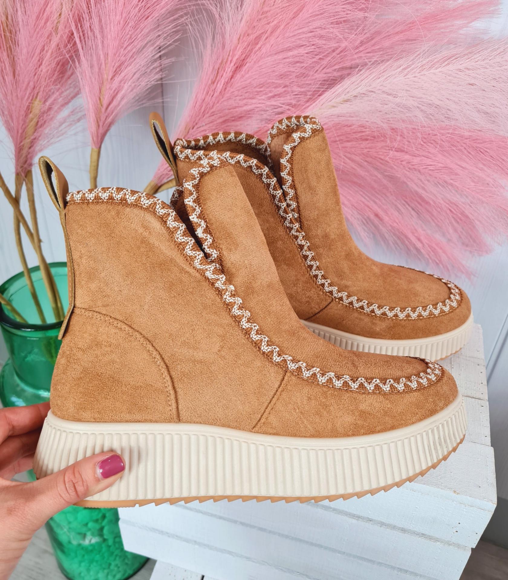 Botines de plataforma en color camel, calentitos por dentro, costura en beige.