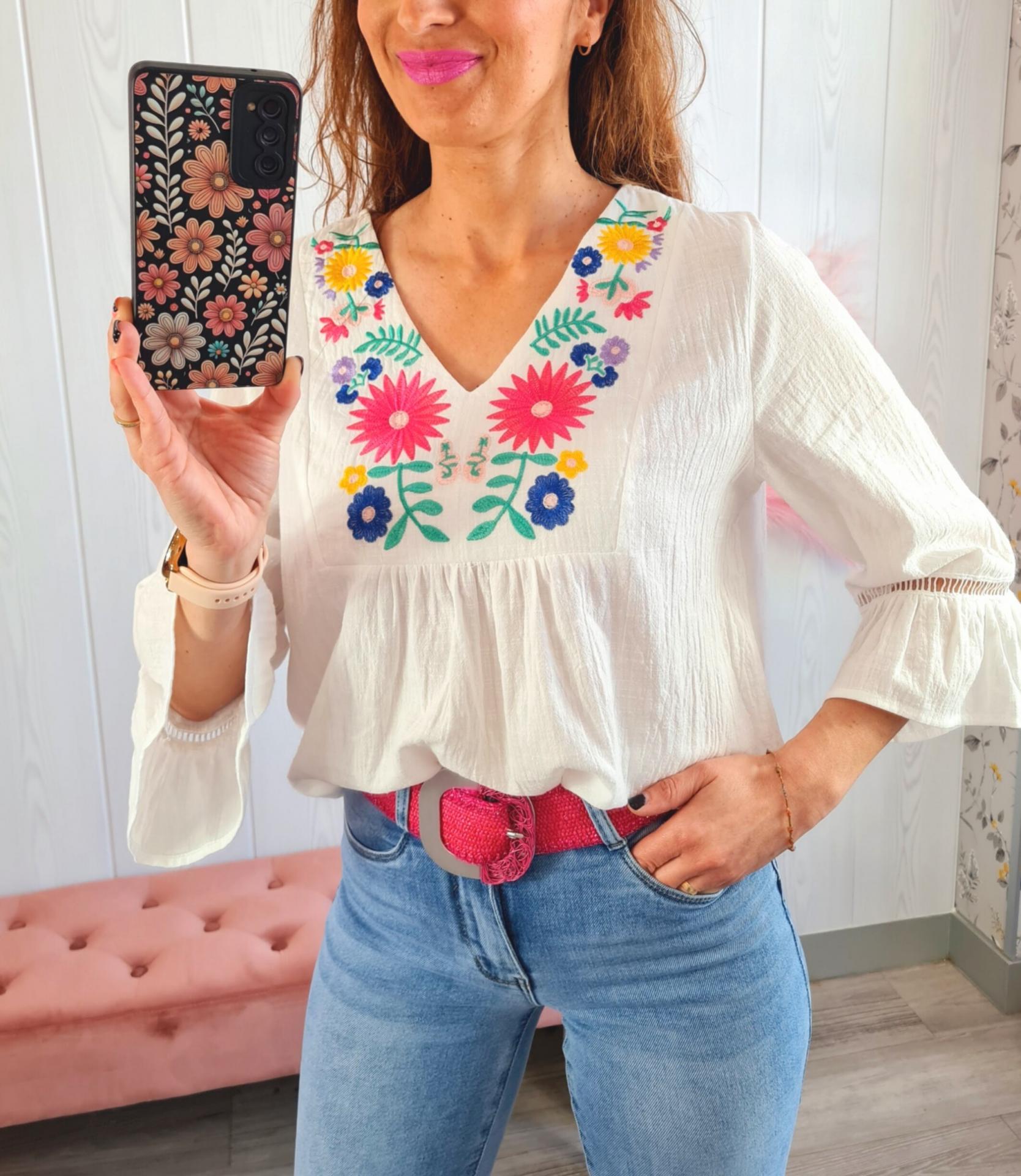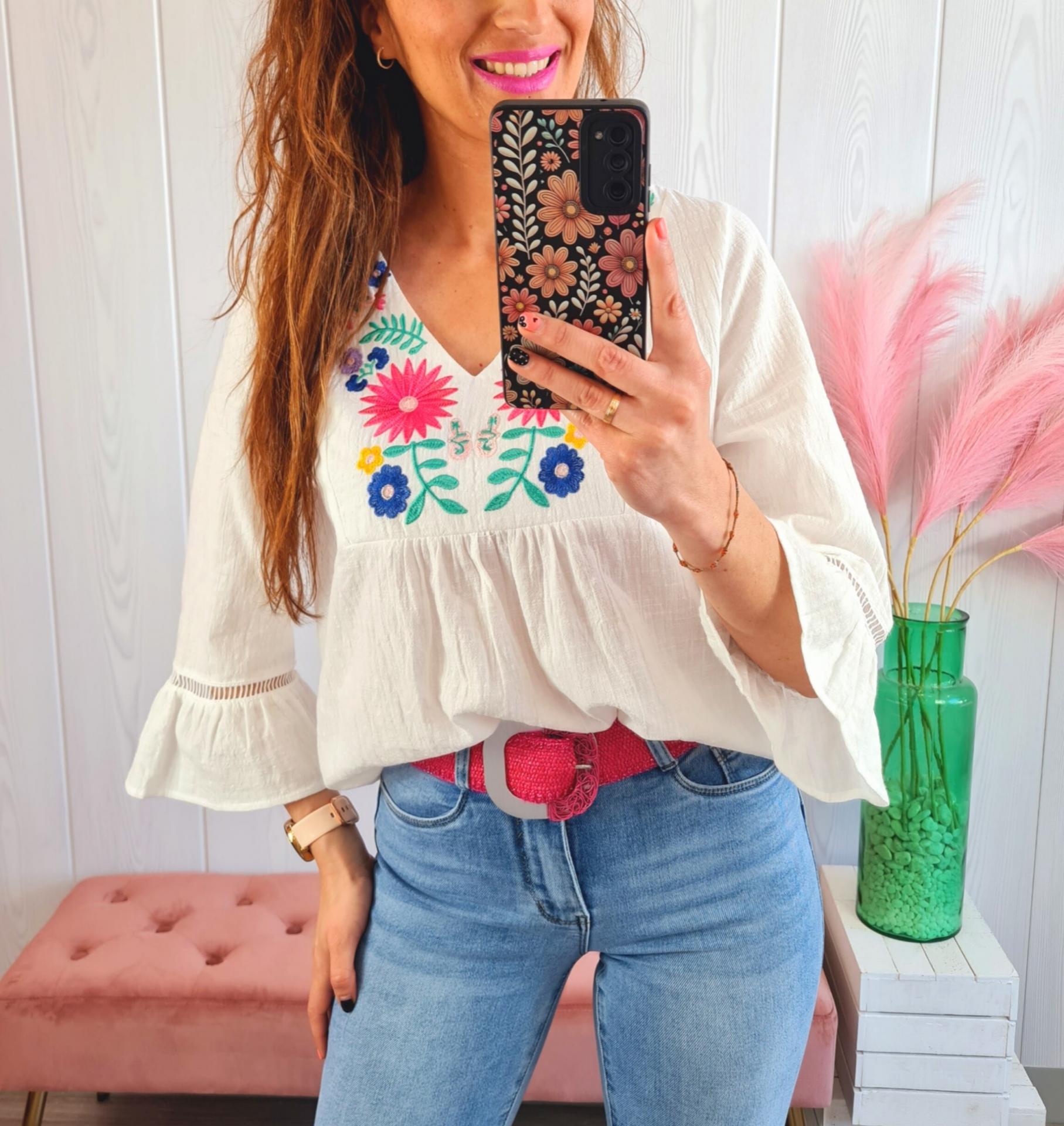 Blusa Blanca Flores