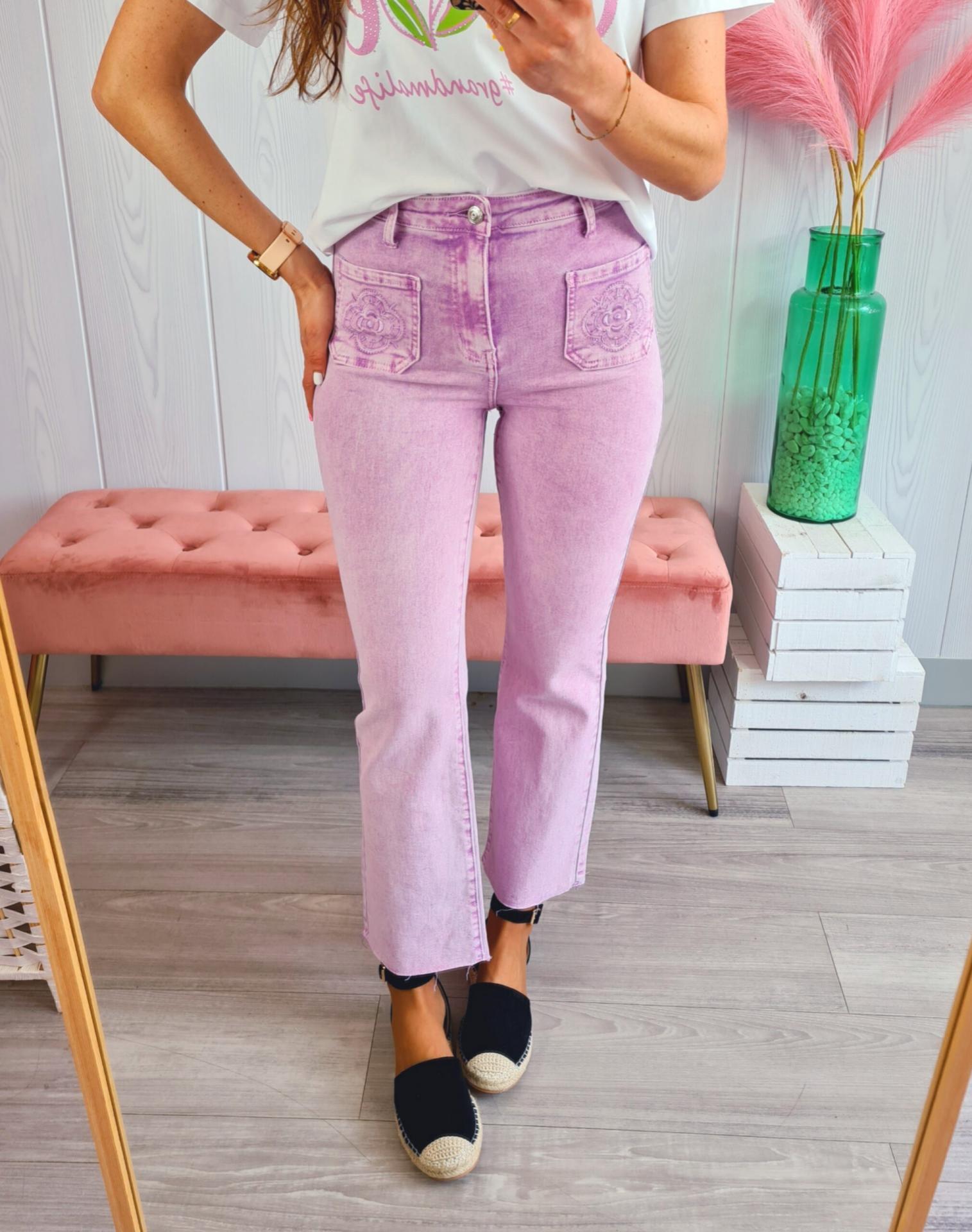 Jeans Lila Flor Bolsillo